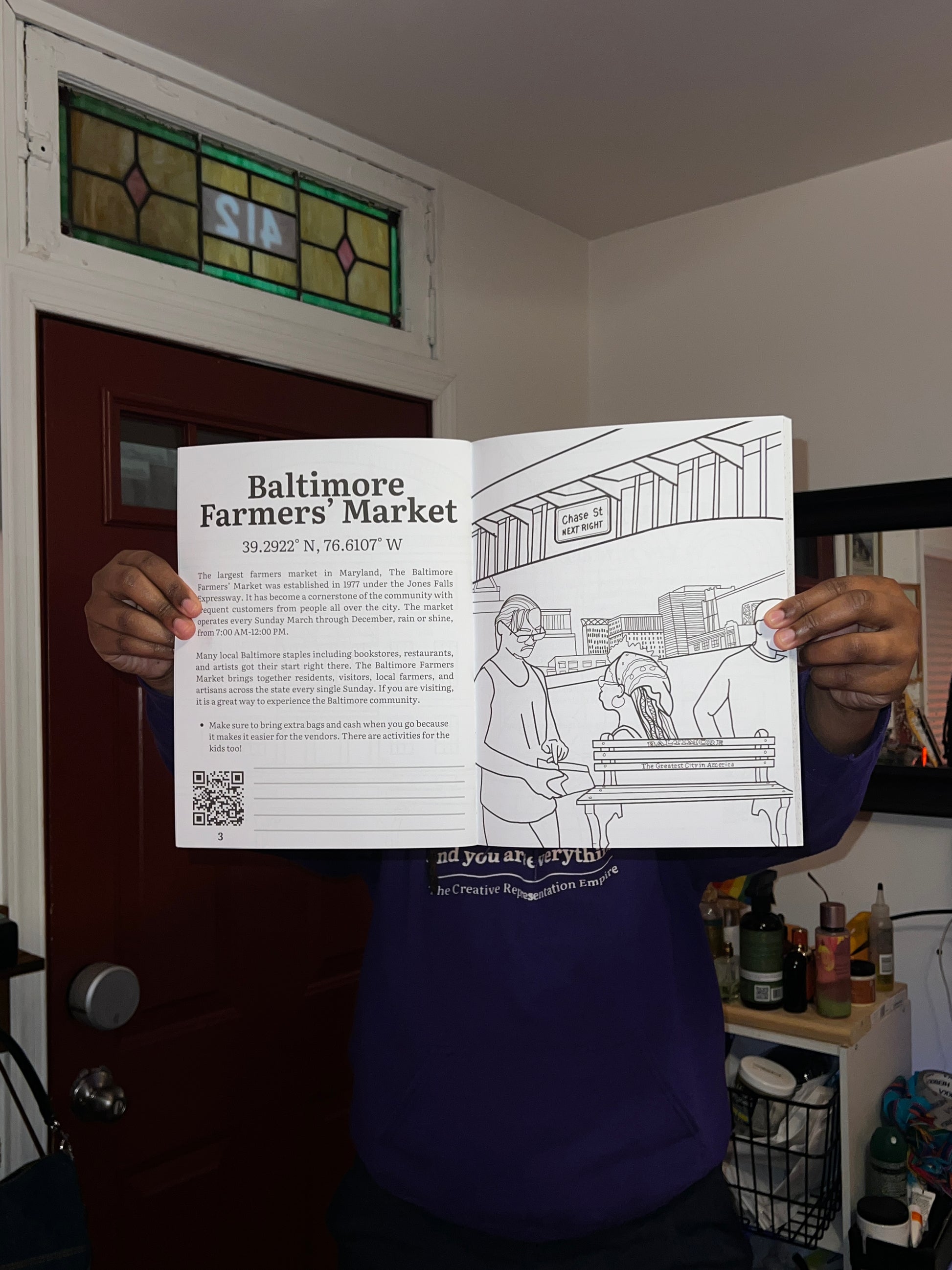 BMORE Present, the newest book in our collection, is an interactive, colorable guide to experiencing Baltimore. The book includes over 40 coloring pages featuring Baltimore neighborhoods, universities, museums, and cultural landmarks. This project was created to help the city retain talent, connect tourists with local communities, and support colleges in integrating students into the city.